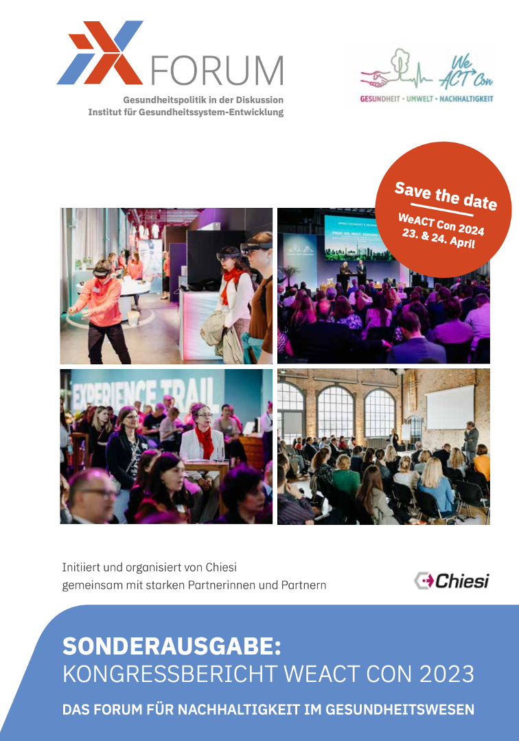 Einmal im Jahr – 2024 dann zweitägig am 23. und 24. April – soll die WeACT Con zu einem festen Treffpunkt werden für alle Aktiven und Initiativen, die sich für mehr Klima- und Umweltschutz im Gesundheitswesen einsetzen. Initiiert und organisiert wird die WeACT Con von Chiesi Deutschland gemeinsam mit Partnern.